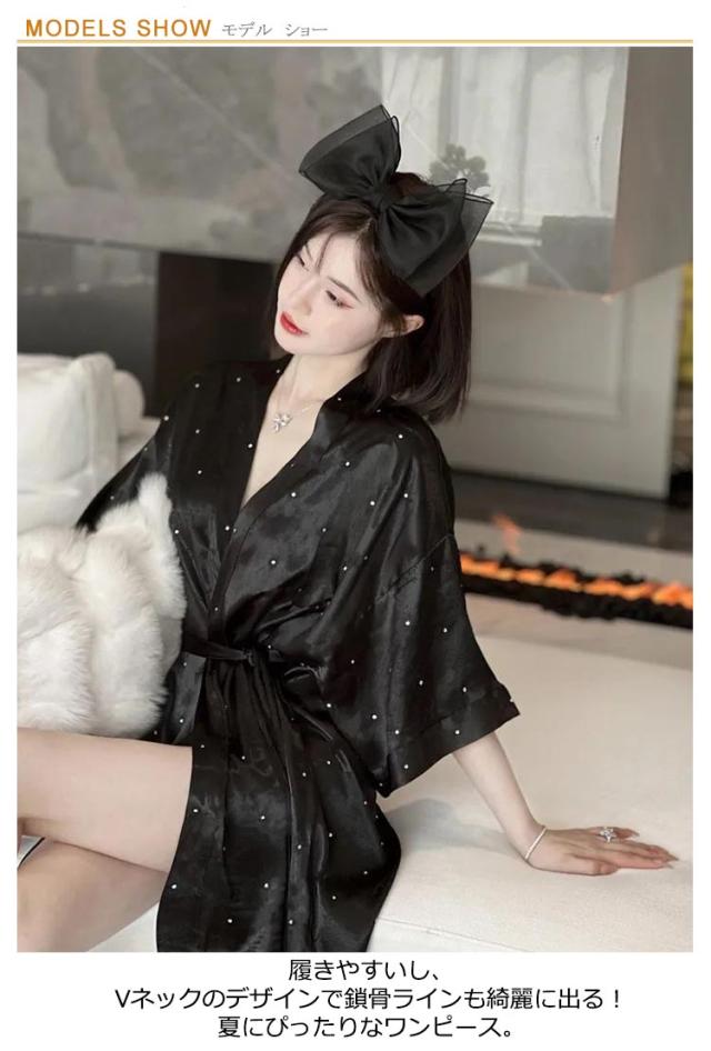 | M-2XL!夏に必須の人気パジャマ。心地よい肌触り 履きやすいし、Vネックのデザインで鎖骨ラインも綺麗に出る!夏にぴったりなワンピース ソフトな肌触りと軽い着心地はお風呂上がりにも気持ちいいです。寝心地を考えた生地の厚みで、ごわごわせずにぐっすり眠れる 上品なデザイン、着脱しやすいし、着ているだけで気分も上がること間違いなし、ルームウェア、パジャマ、部屋着、寝間着、温泉、旅館、多様にお使いいただけます。 腰にはベルト付き、お好きにより調整でき、締め付けず快適な穿き心地です | |