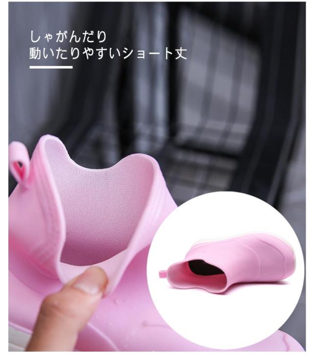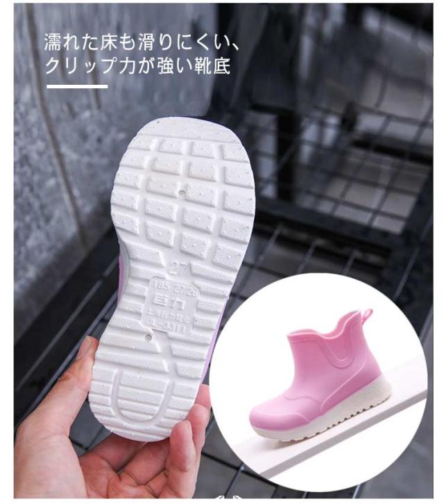 | 一人で脱ぎ履きやすい レインブーツ 17.5-22.5cm 雨道でも安心♪縫い目がないので防水性 濡れた床も滑りにくい、クリップ力が強い靴底 長時間歩いても疲れにくい柔らかい素材 バックスタイルのプルストラップ付き♪脱ぎ履きもやすい実用性 しゃがんだり動いたりやすいショート丈 | |