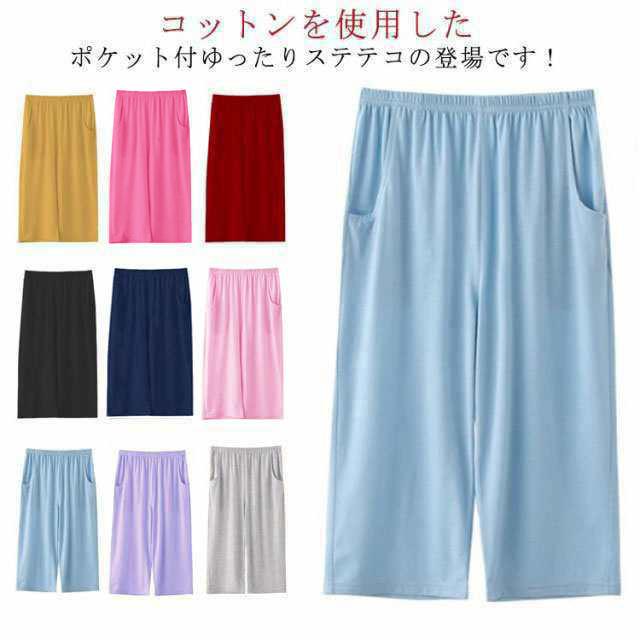 ハーフパンツ ステテコ レディース ルームパンツ 春夏 部屋着 ルームウェア 綿 ステテコ ひざ下 ワイドパンツ イージーパンツ リラックス パジャマ ボトムス 涼しい おしゃれ 無地 コットン ポケット付 ゆったり 可愛い 大きいサイズ 通気性 吸水性