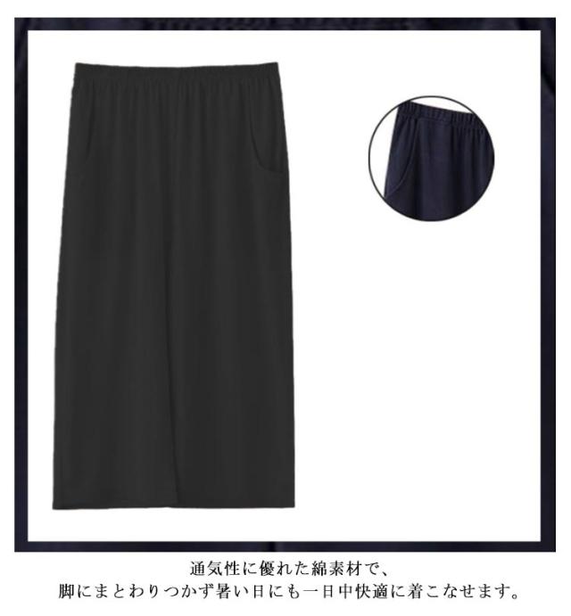 | コットンを使用したポケット付ゆったりステテコの登場です! 両脇にポケット付なので、ちょっとした小物を入れるのに大変便利。 太もも部分が幅広で楽ちん。 通気性に優れた綿素材で、脚にまとわりつかず暑い日にも一日中快適に着こなせます。 お家でのリラックスタイムはもちろんお散歩やコンビニへのお買い物など、「ちょっとそこまで」ならそのまま外出しても大丈夫。 年代問わずに着用できるシンプルなデザインが嬉しい。 | |