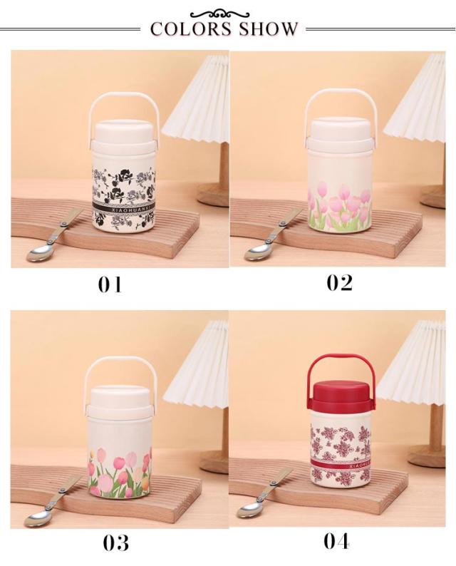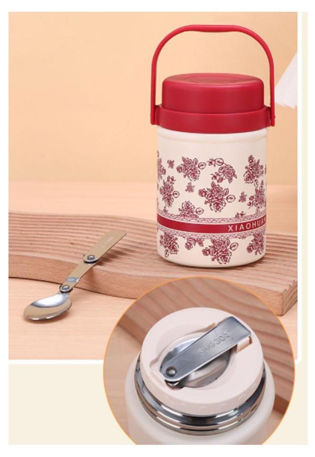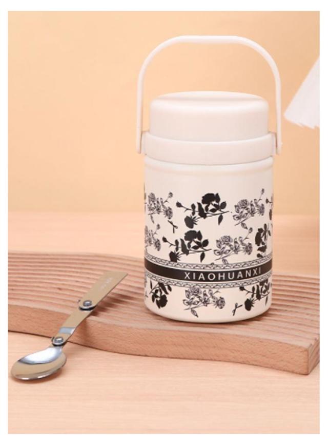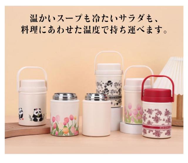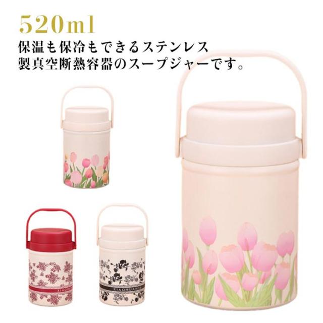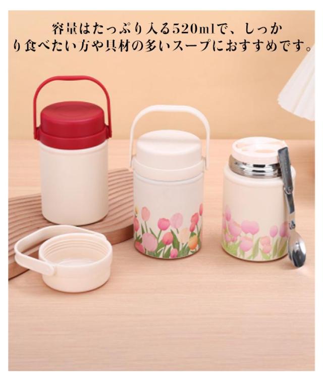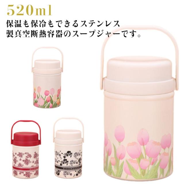真空断熱 スープジャー フードポット フードコンテナ ハンドル付き スープボトル ランチジャー 520ml スプーン付き スープポット 大容量 ランチポット 保冷 保温弁当箱 保温調理 保温 弁当 ステンレスボトル 花柄 フードポット 無地