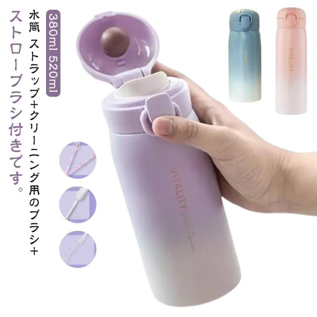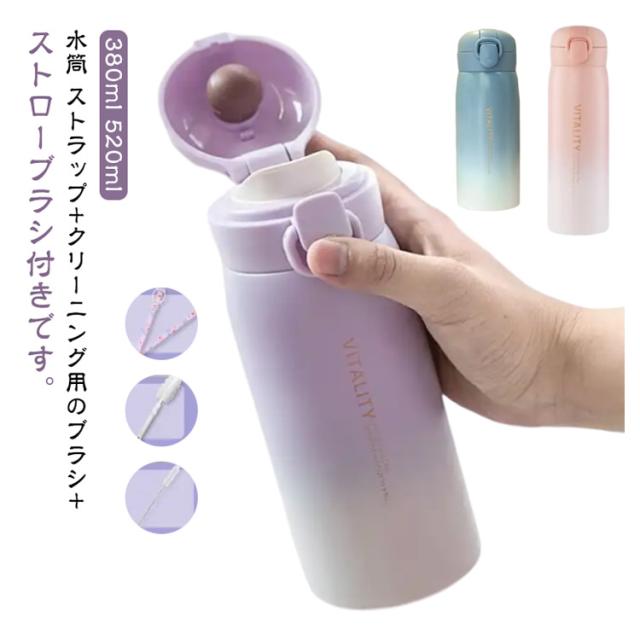 大容量 紐付き ストロー 保冷 大人 子供用 小学生 女の子 キッズ 男の子 マグボトル 水筒 ダイレクトボトル スポーツ 中学生 保温 520ml ワンタッチ 紐 ストラップ付き 真空断熱層 ステンレスボトル 持ち運び 水筒 アウトドア クリーニング用のブラシ