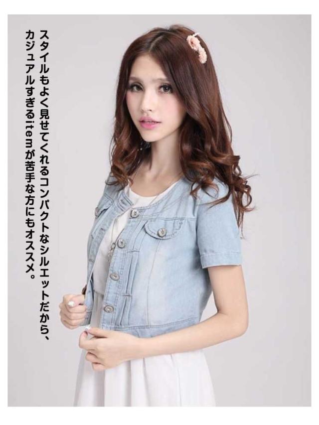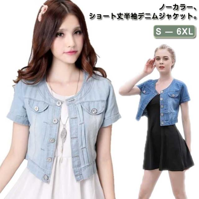 デニムジャケット ノーカラー 半袖 デニム ジャケット レディース ショート丈 デニムボレロ 半袖デニムジャケット Gジャン ショートジャケット ライトブルー 大きいサイズ ビンテージ S M L XL 2XL 3XL 4XL 5XL 6XL