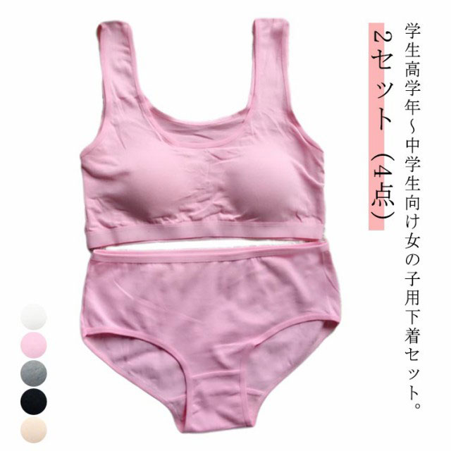 大人 キッズ 2セット(4点) 子供 女の子 上下セット ブラジャー 下着セット 肌着 パンツ パッド付き 小学生 ショーツ ガールズ カップ付き インナー アンダーウェア ジュニアブラ スポーツブラ 中学生 ブラジャー 下着 コットン 可愛い 綿 ジュニア