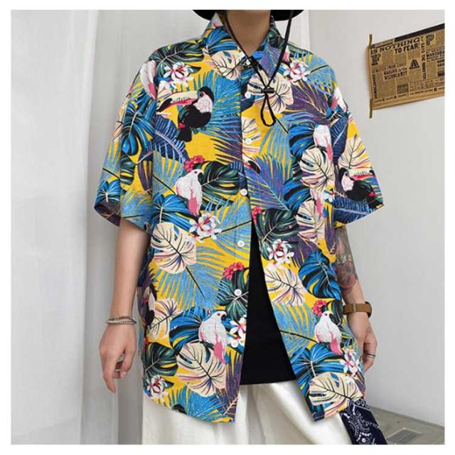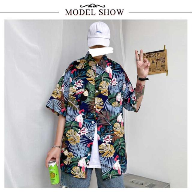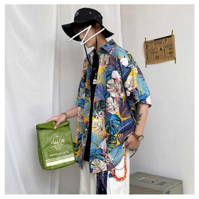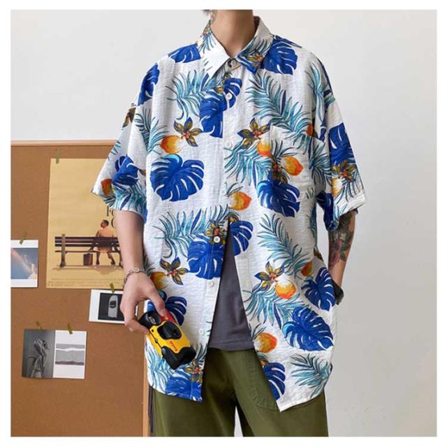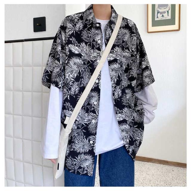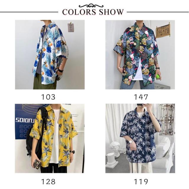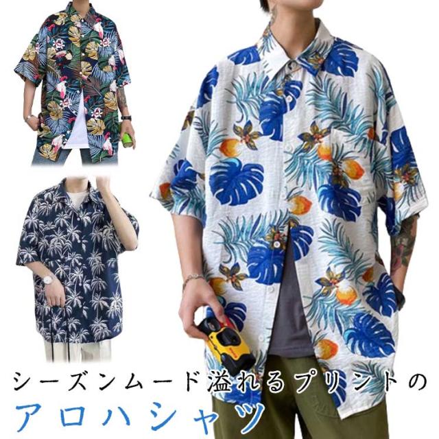 アロハシャツ 柄シャツ メンズ 半袖 総柄 黒 白 和柄 男性 ハワイアンシャツ カジュアル トップス シャツ サーフ系 リゾート 海 ビーチ オシャレ カジュアル 父の日 ギフト プレゼント