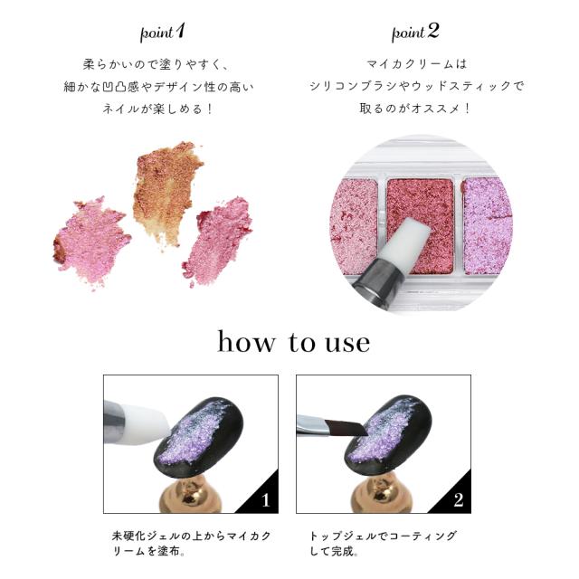 マイカ配合で少量で美しく発色し、ニュアンスアートとの相性抜群