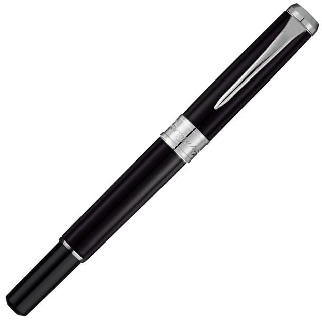 穂先にいたち毛を使用した本格的な万年毛筆。静寂に包まれた星月夜のような輝き…シックでエレガントなデザインは、凛とした気品を漂わせます。スペアーインキ式