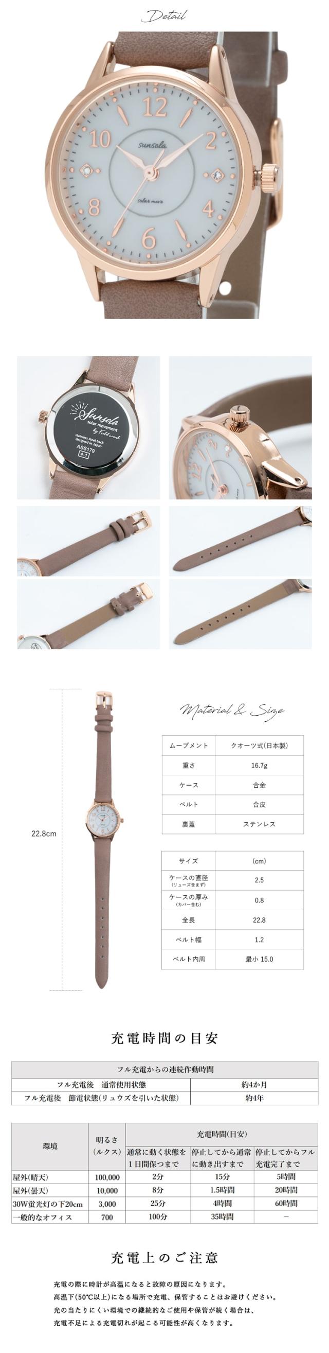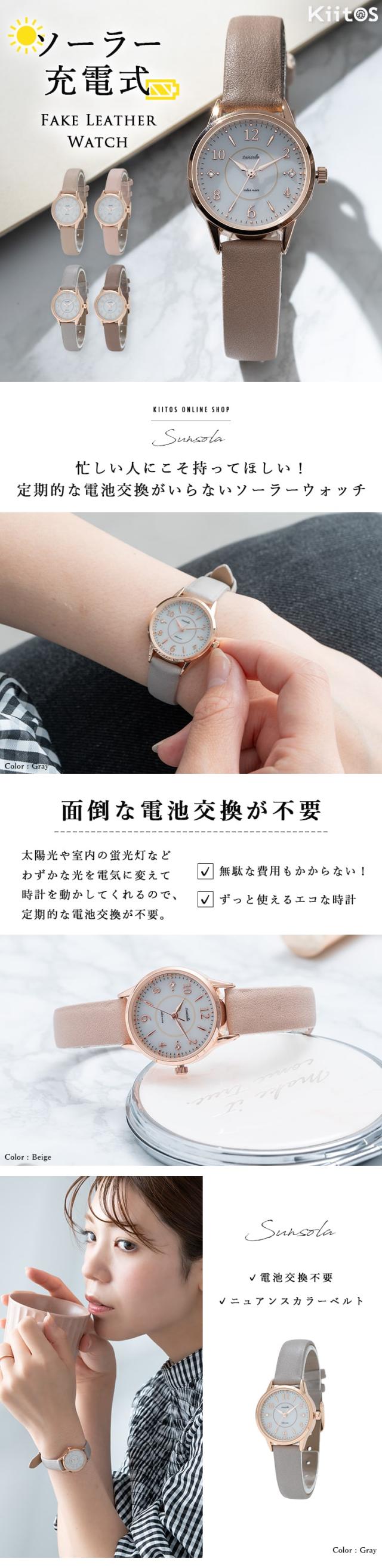 腕時計 レディース ソーラー シンプル ウォッチ 合皮 ベルト ブランド かわいい おしゃれ 大人 20代 30代 40代 50代 受験 綺麗 仕事 学生 女性 見やすい 日本製ムーブメント 1年間のメーカー保証付 プレゼント ギフト