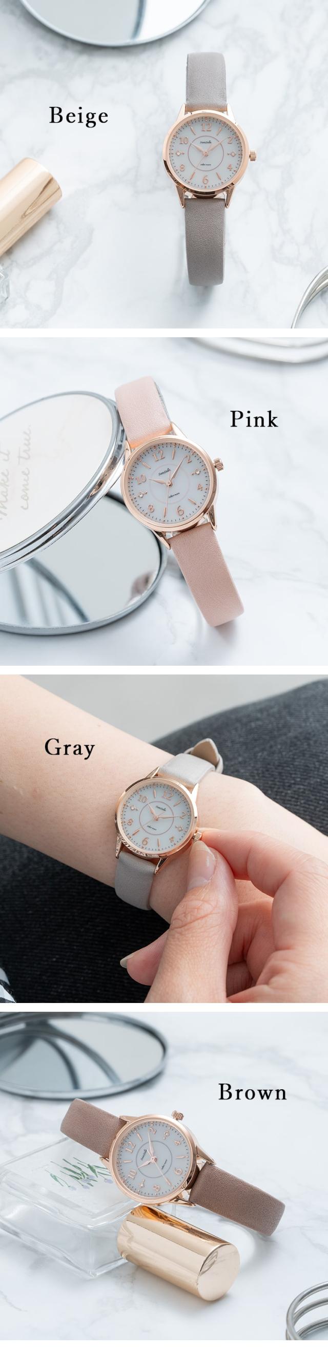 ベルト以外の金属パーツはピンクゴールドで統一されており、大人可愛い手元に。
