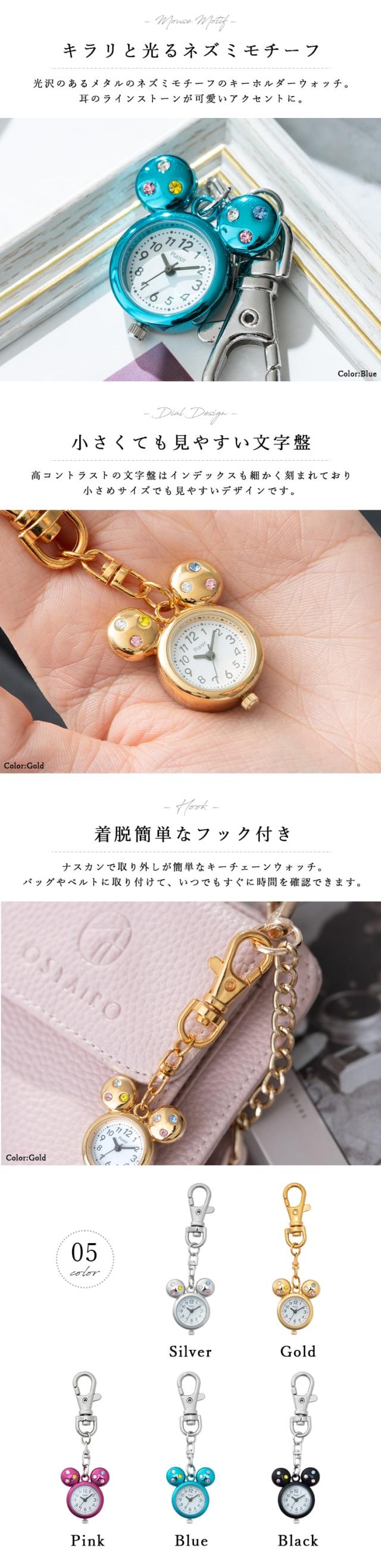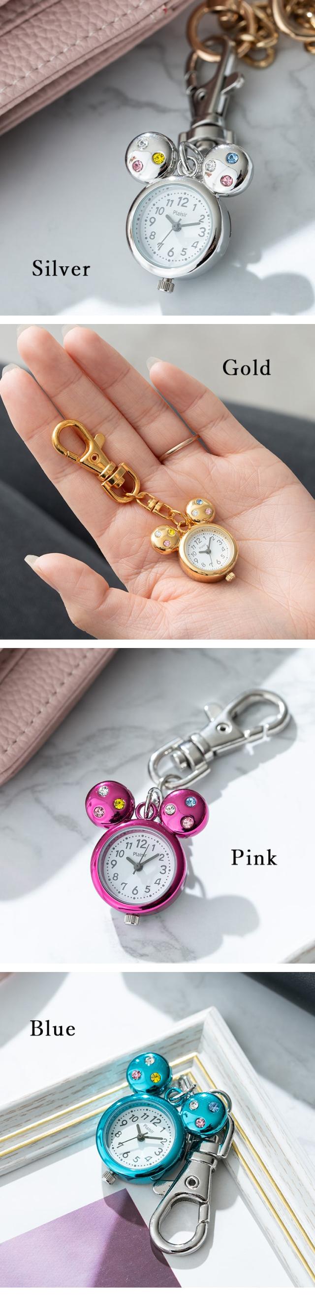 懐中時計 レディース キーホルダーウォッチ バッグチャーム ネズミモチーフ かわいい おしゃれ 大人 仕事 学生 キッズ 子供 20代 30代 40代 女性 プレゼント ギフト 見やすい 日本製ムーブメント 1年間のメーカー保証付 名入れ