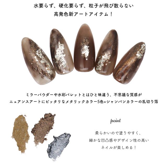 ニュアンスアートにぴったりなメタリックカラー5色+シャンパンカラー乱切り箔1色◎