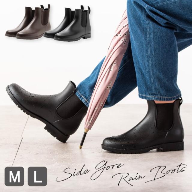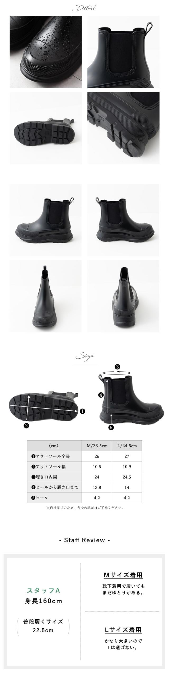 レインブーツ レディース 厚底 サイドゴア 長靴 ショート 防水 歩きやすい 自転車 大人 おしゃれ かわいい 滑りにくい 4cmヒール 履きやすい 雪用 アウトドア ボリュームソール 23.5cm 24.5cm M L 雨晴れ兼用