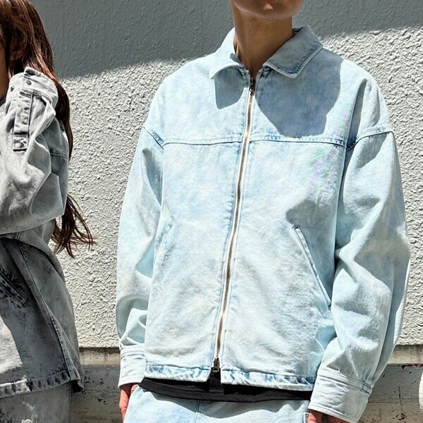 ムラ感のあるブリーチ加工を施した、ひと際目を惹くジップデニムブルゾンです。