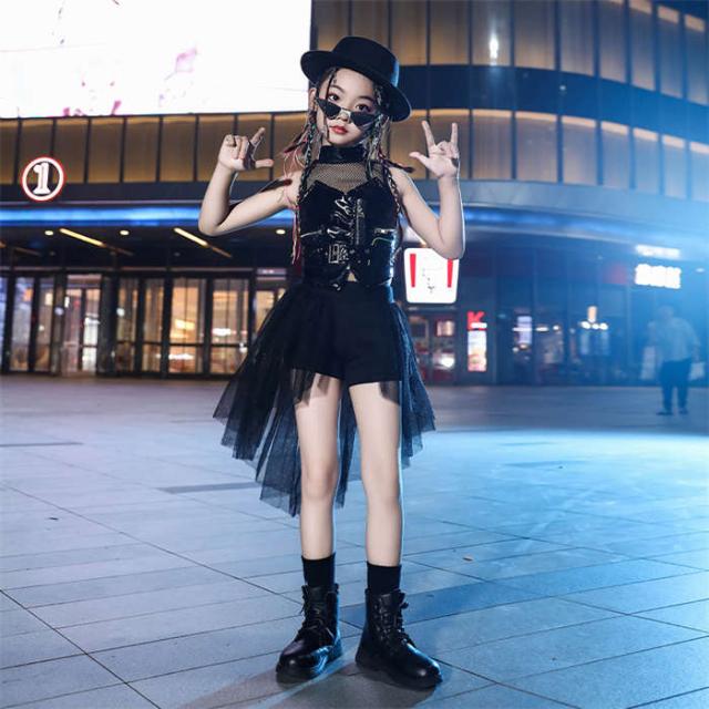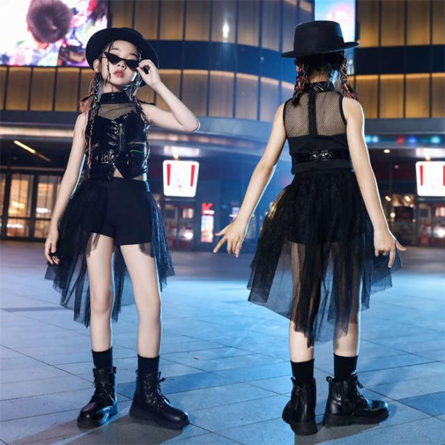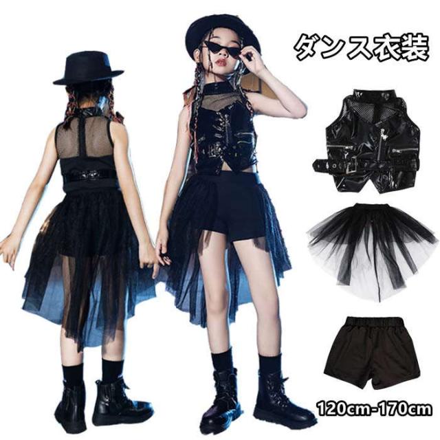 商品名:ダンス服 女の子 ダンスウェア キッズ ダンス衣装 ノースリーブ 黒 チュール ジャズダンス ヒップホップ セットアップ ダンス着 ステージ衣装 k-pop 演出服 団体服 練習着 ダンス大会 イベント衣装 踊り 大きいサイズ 上下セット おしゃれ かっこいい ゆったり 派手 ファッション 小学生 120cm 130cm 140cm 150cm 160cm 170cm