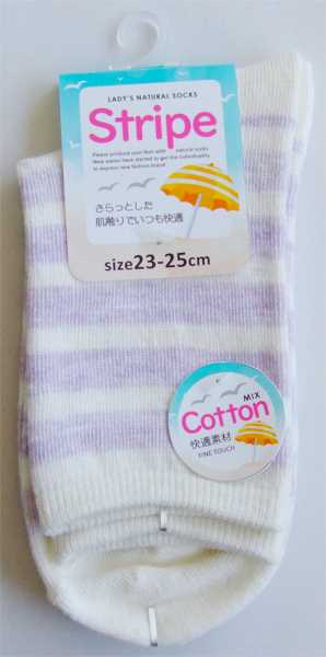 ●品名・婦人 綿混ボーダー柄ソックス