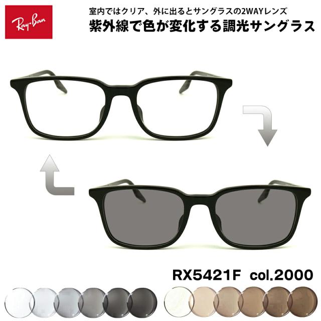 レイバン 調光 サングラス RX5421F (RB5421F) 2000 55mm Ray-Ban アジアンフィット UVカット 色が変わる