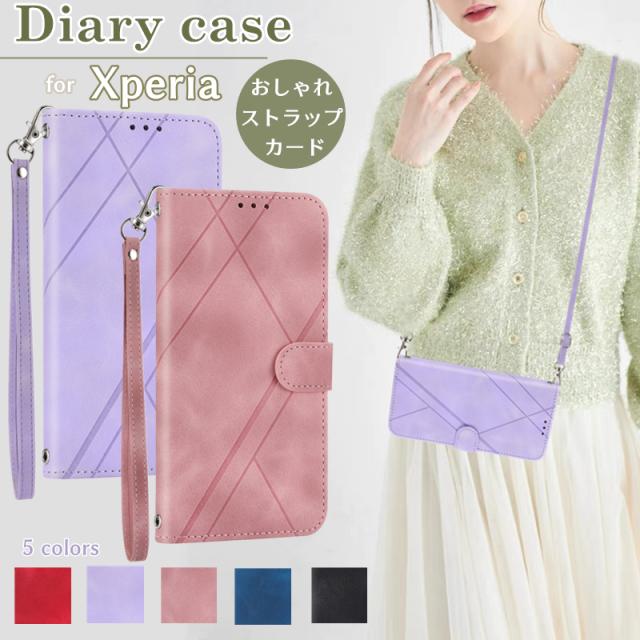 Xperia 1VII 10III 手帳型ケース ショルダー 高級感 Xperia 10 IV 5 IV ケース カバー Xperia 5 V 10 Vケース カバー 手帳型 ストラップ Xperia 10 VI 1 VI 5VIケース カバー シンプル レザー カードポケット SO-51D SO-52D ケース 手帳型カバー SOG11 ケース