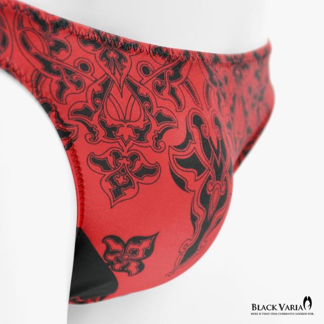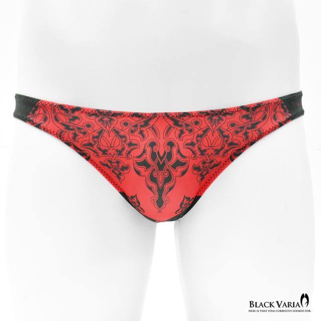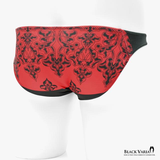 フルバック アラベスク柄 ダマスク柄 模様 植物文様 下着 ビキニ パンツ メンズ(レッド赤) tc009