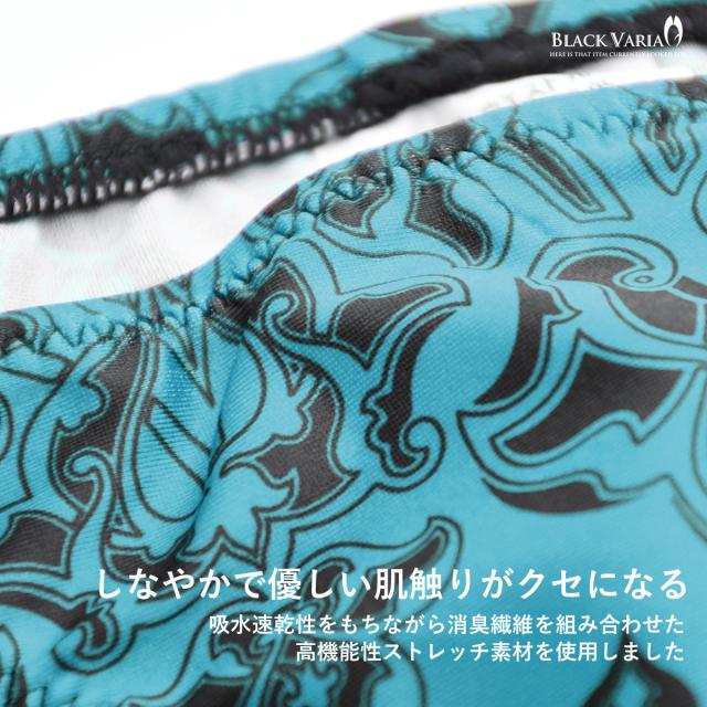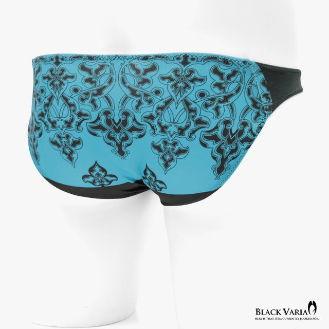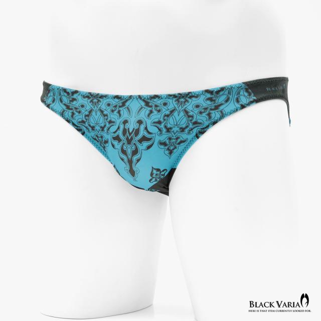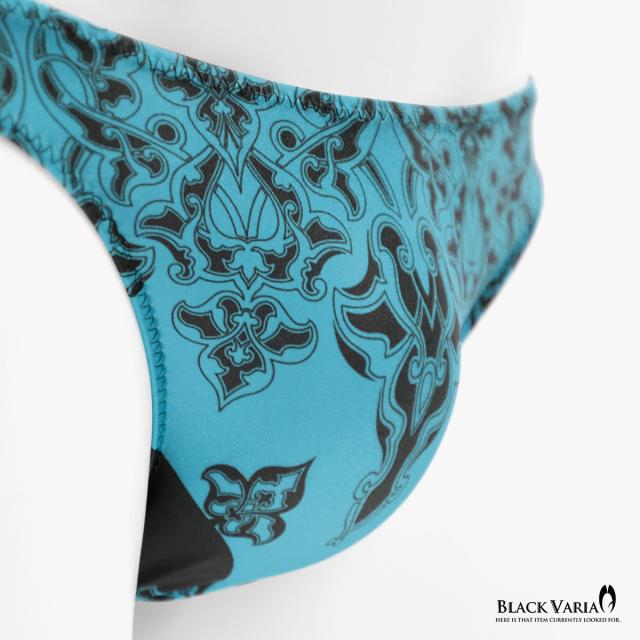 フルバック アラベスク柄 ダマスク柄 模様 植物文様 下着 ビキニ パンツ メンズ(サックスブルー青) tc009