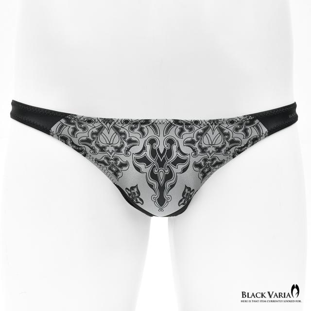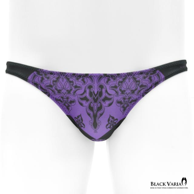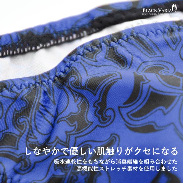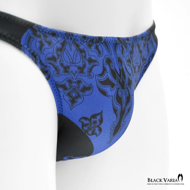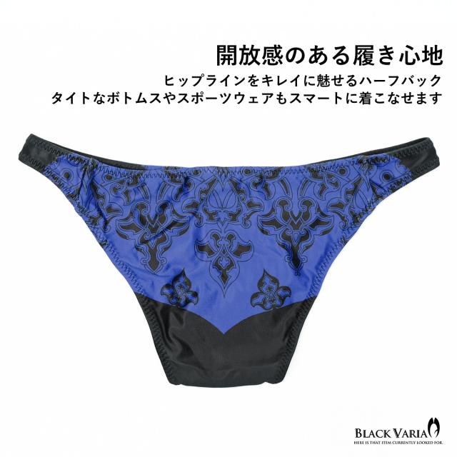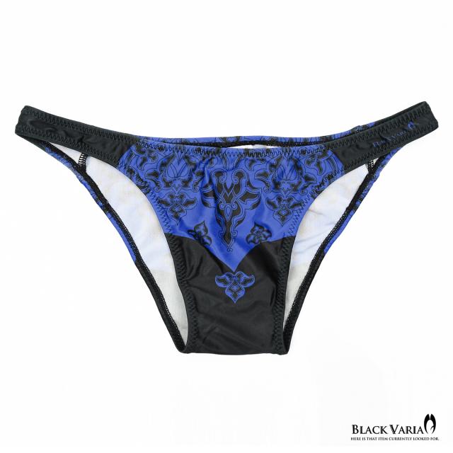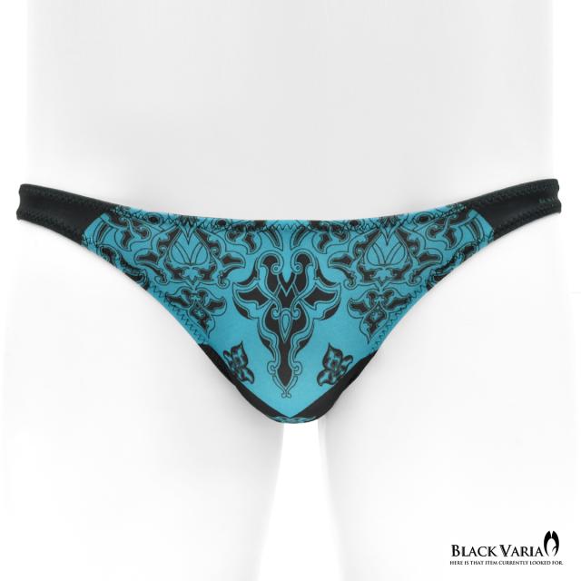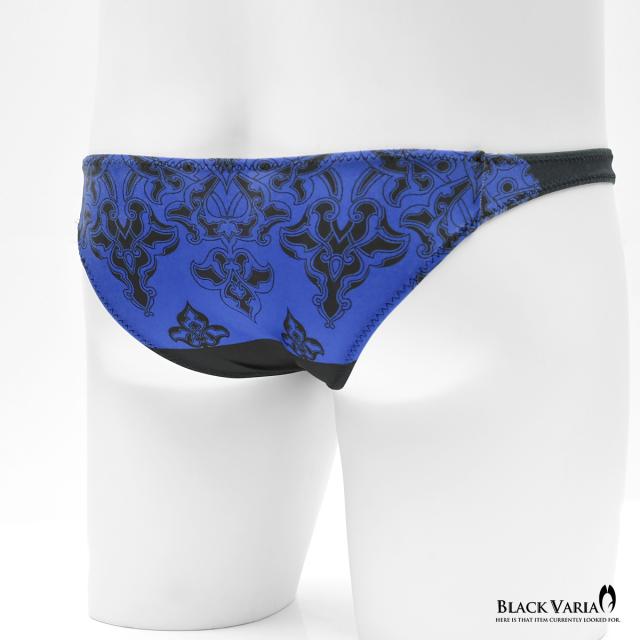 ハーフバック アラベスク柄 ダマスク柄 模様 植物文様 下着 ビキニ パンツ メンズ(ブルー青) tc008