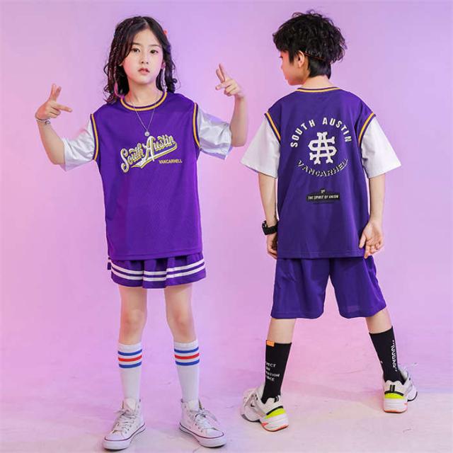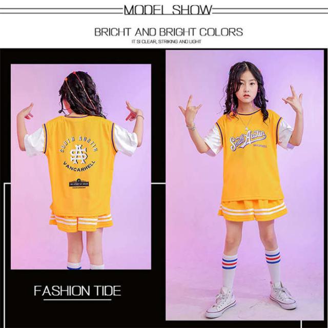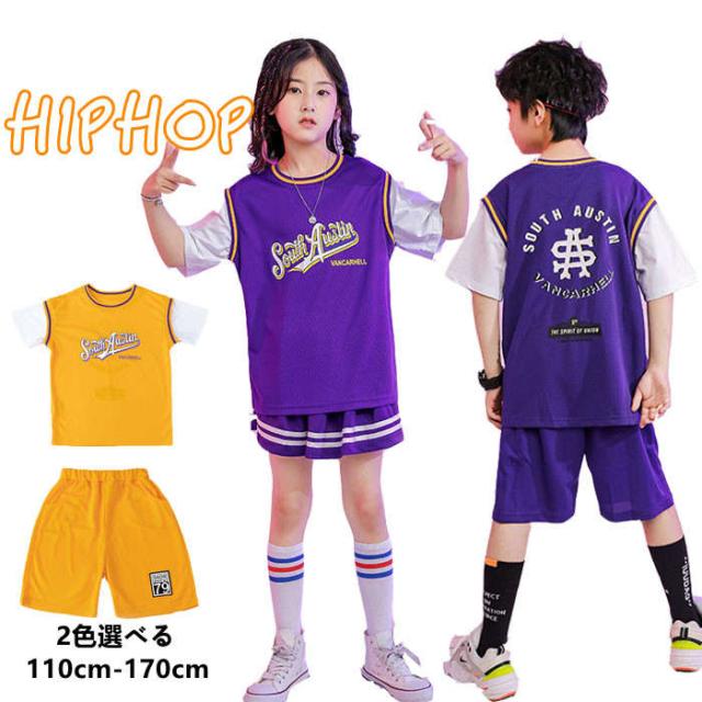 商品名:ダンスウェア 子供 チアガール 女の子 男の子 半袖 tシャツ パンツ スカート ダンス服 キッズダンス衣装 ジャズダンス ヒップホップ パープル イエロー 2点セット ダンス着 ステージ衣装 hiphop 演出服 団体服 練習着 応援団 ダンス大会 イベント衣装 踊り スポーツウェア 大きいサイズ 上下セット おしゃれ かっこいい ゆったり ファッション 小学生 送料無料