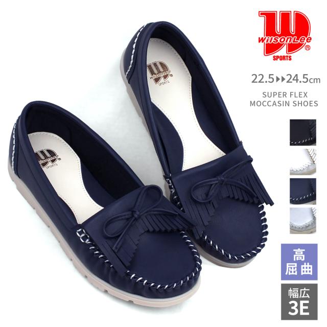 モカシンシューズ デッキシューズ ドライビングシューズ スリッポン モカシンパンプス リボン フリンジ フラットシューズ カジュアル レディース コンフォート 3E 幅広設計 外反母趾対策 痛くない 屈曲性 WILSON LEE SPORTS ウイルソンリースポーツ 8245