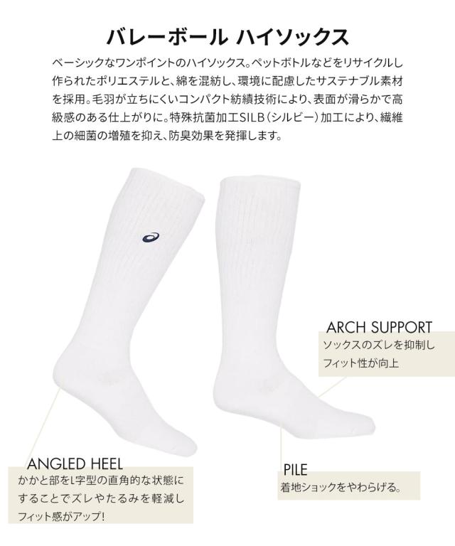 アシックス asics ハイソックス レディース メンズ 厚手 ジュニア バレーボール ソックス ロング 靴下 ワンポイント ロゴ ロングソックス スポーツ バレー 中学生 高校生 定番 トレーニング 部活 試合 練習 くつした 白 ホワイト 人気 3053A136