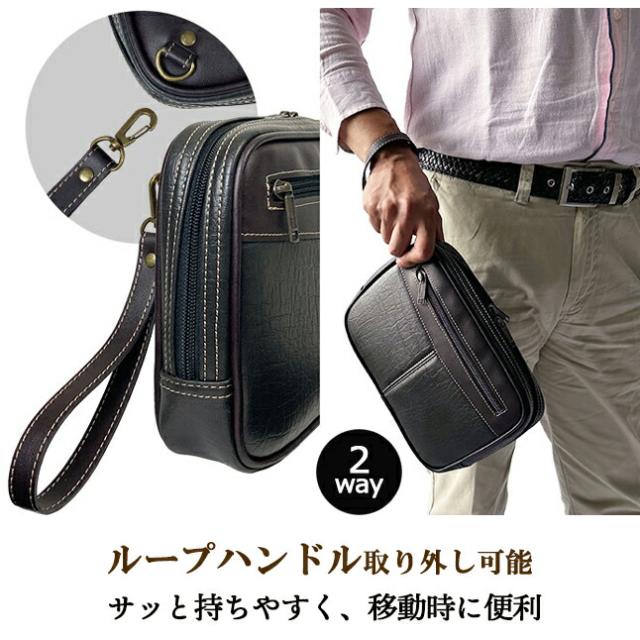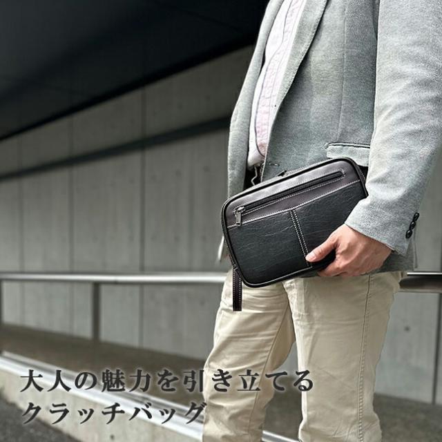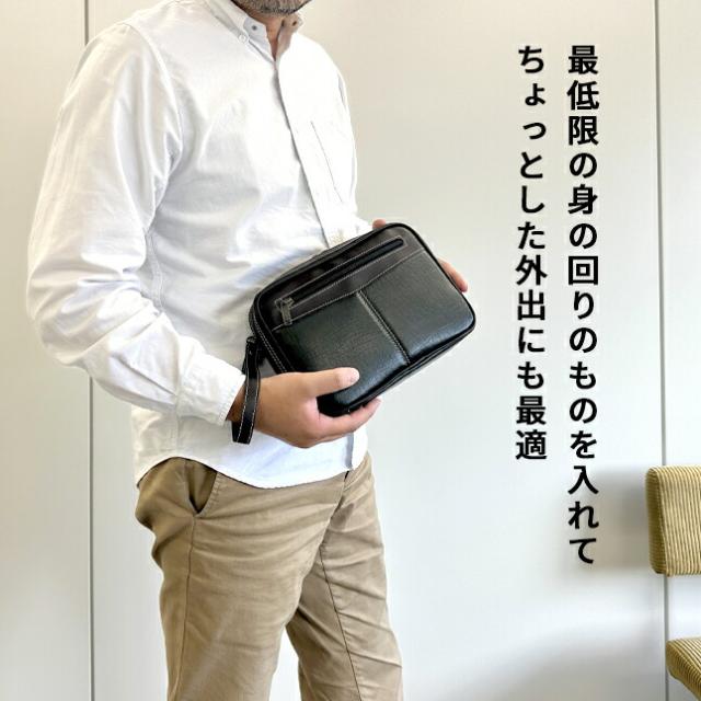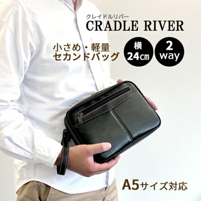 セカンドバッグ メンズ 25953 CRADLE RIVER クレイドルリバー 合皮 セカンドバッグ 小さめ 24cm A5サイズ 大開き ストラップ付き コンパクト クラッチバッグ 旅行 高級感 結婚式 冠婚葬祭 おしゃれ かっこいい 渋い シンプル 男性 メンズ 紳士 父の日 敬老の日 黒 ブラック
