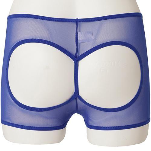 ストレッチメッシュ生地のOバックがセクシーなボーイレッグタイプのショーツ(T-BACK・SHORTS) ブルー