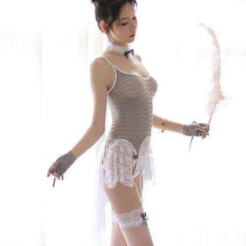 ストッキング素材とレース、メッシュと透け感が楽しめる素材を組み合わせ、絶妙な透け感と身体のラインにピッタリと沿うタイトなシルエットがたまらなくセクシーで目を惹くアイテム!