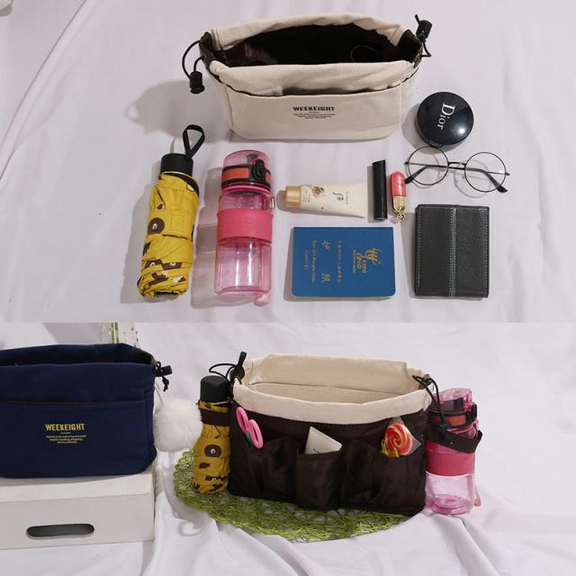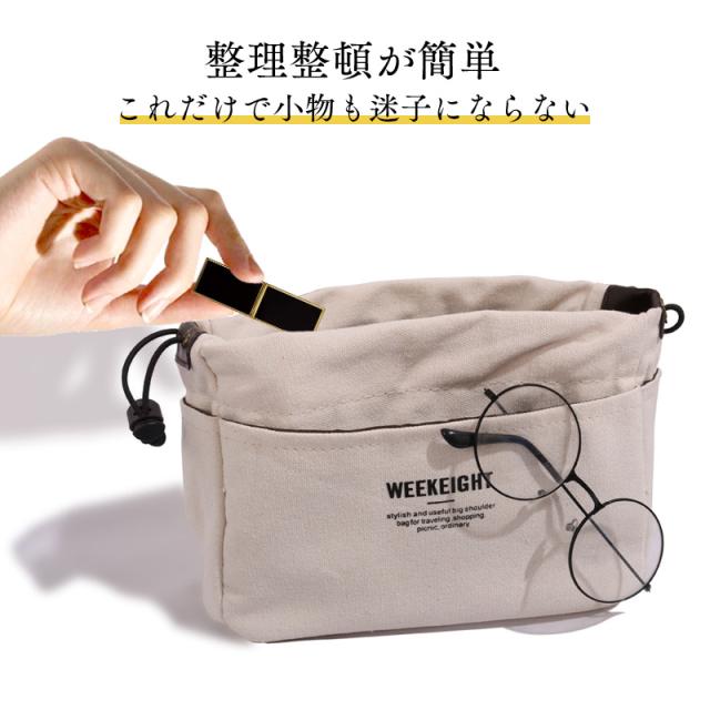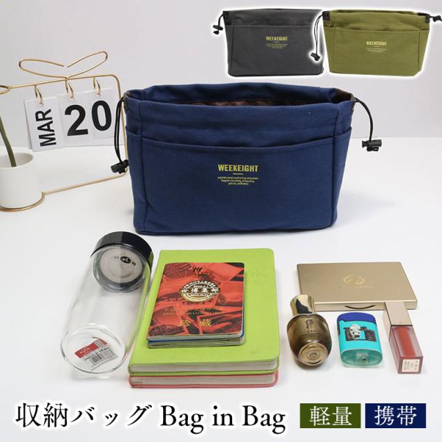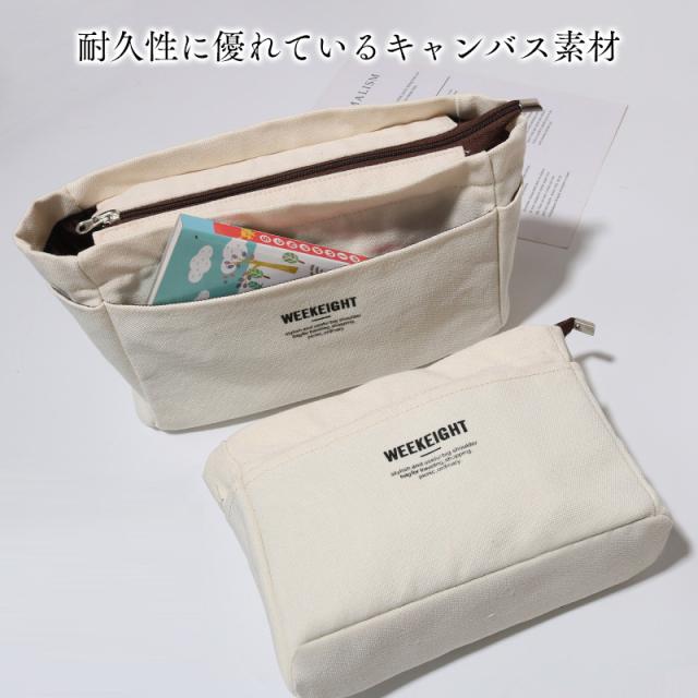 バッグインバッグ 軽量 携帯 ポーチ バッグ 収納袋 インナーバッグ 横型 整理 ヨコ型 収納バッグ 便利グッズ 旅行 出張 キャンバス素材 ネコポス送料無料