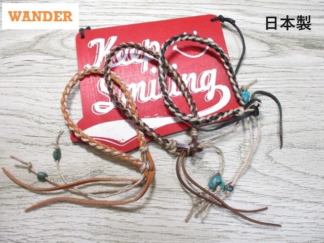 アンクレット メンズ レディース 栃木レザー 麻ひも ヘンプアンクレット ブランド ハンドメイド 本革 日本製 ねじり編み込みデザイン WANDER