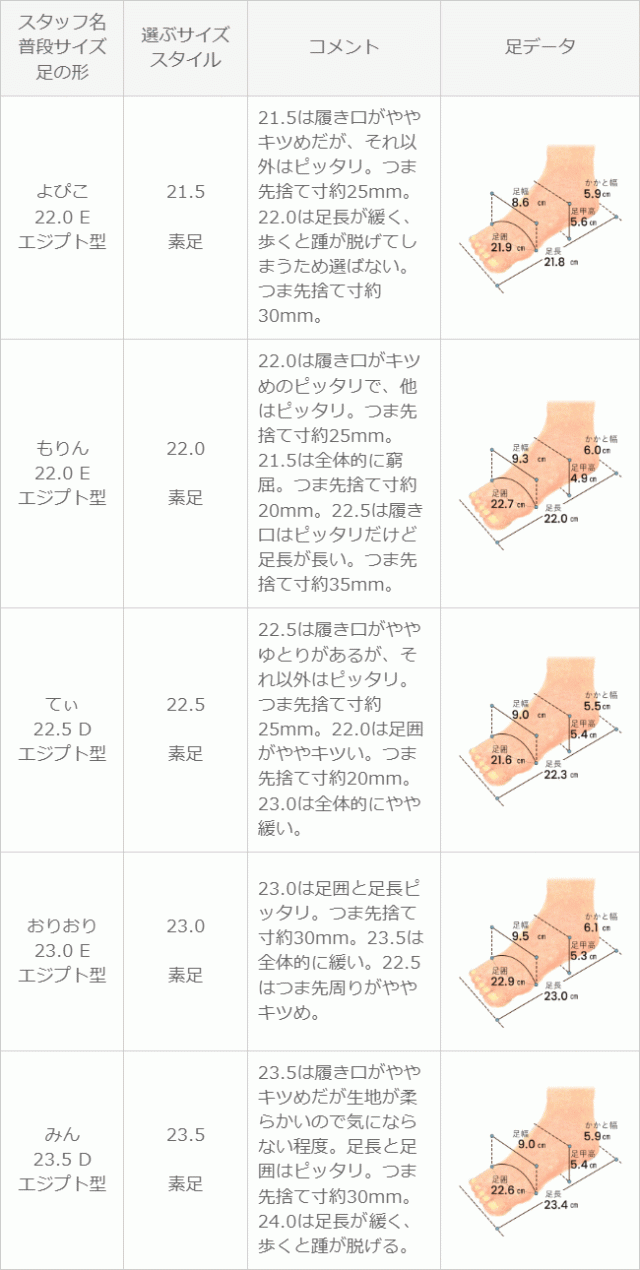 ※足の形には個人差があります。スタッフ試着感想は参考程度にお考え下さい。