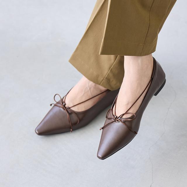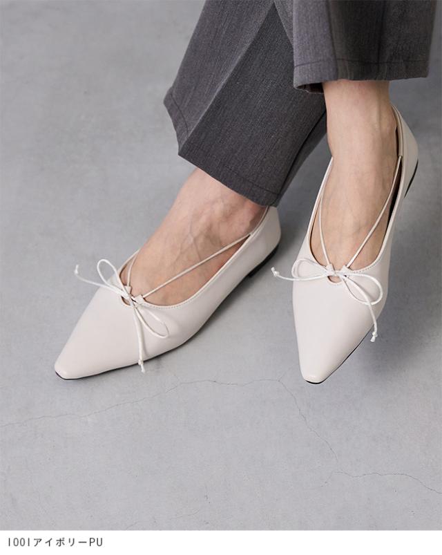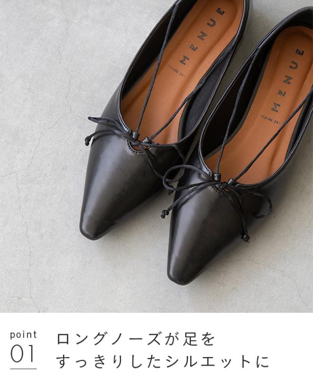 甲に沿うストラップが足を上品に魅せてくれるロングノーズリボンパンプス