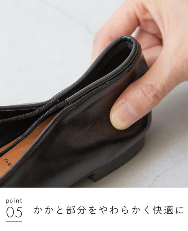 つま先にかけてすっと細く伸びたスクエアトゥのロングノーズが足をすっきりしたシルエットに。