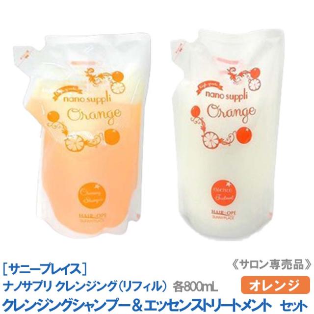 送料無料【1&1セット】[SUNNYPLACE]サニープレイス ナノサプリ クレンジングシャンプー&エッセンストリートメントセット(レフィル) ヘアオペ (オレンジ)各800mL ◎詰め替え用 低刺激