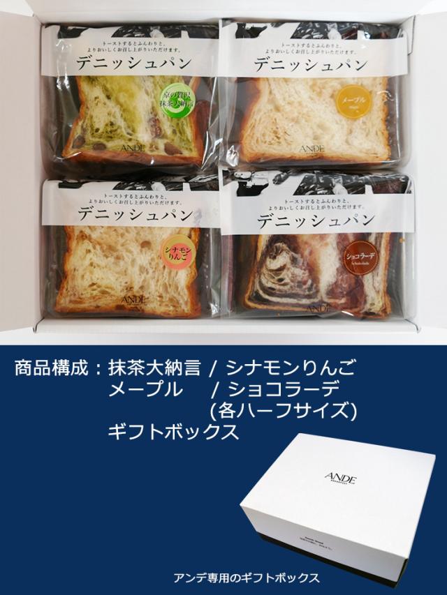 デニッシュ 食パン ギフト (ボックス付き) 抹茶大納言・シナモンりんご・メープル・ショコラーデ 各ハーフサイズ 4点セット アンデ
