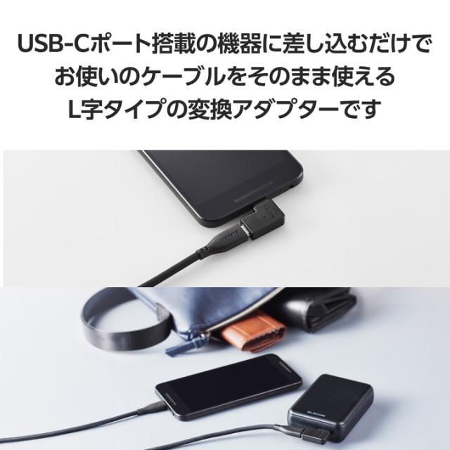 エレコム USB Type-C アダプタ L字横 Type-Cオス - Type-Cメス タイプC 出っ張りを抑えてスッキリ配線 ブラック ┃MPA-CFCMLAD01BK
