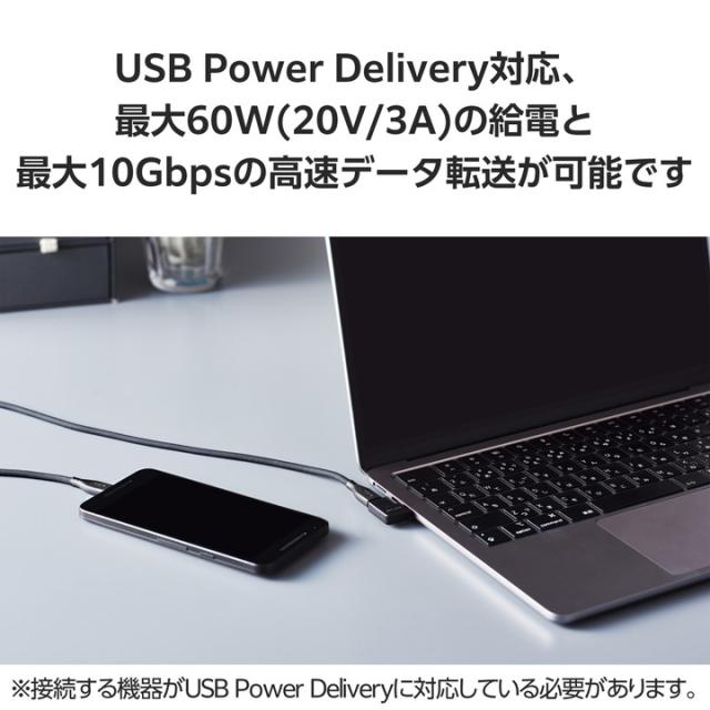 出っ張りを抑えてスッキリ配線!USB Type-C(TM)アダプター L字/横向きタイプです。USB 10Gbps(USB3.2(Gen2))、USB Power Delivery(最大60W)に対応。好きな方向に配線ができ、狭い場所でも配線がしやすいです。