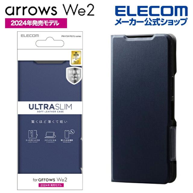 エレコム arrows We2 用 ソフトレザー ソフトレザーケース 薄型 磁石付 arrowsWe2 F-52E FCG02 ソフト レザー ケース カバー 手帳型 ネイビー ┃PM-F241PLFUNV