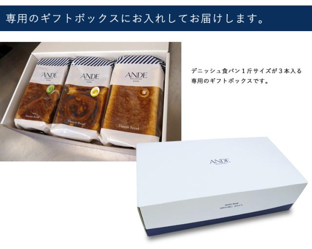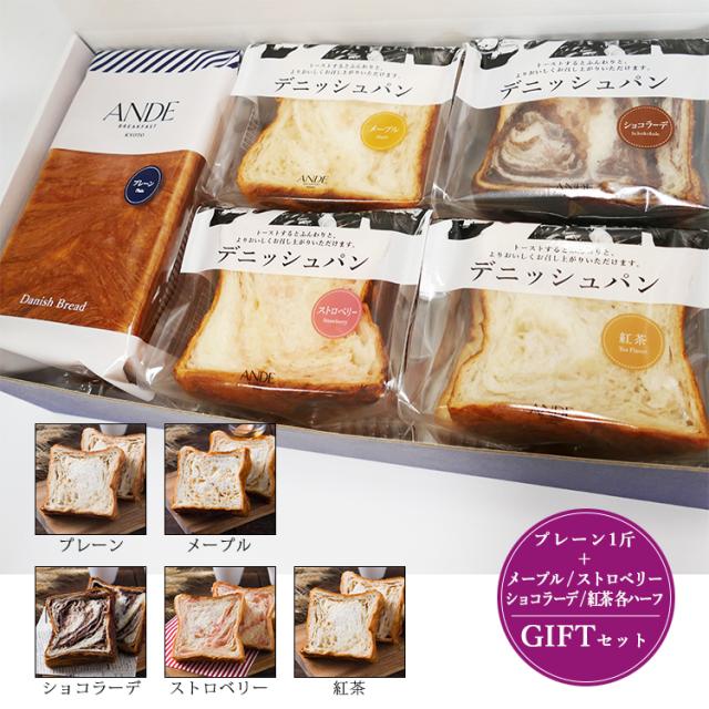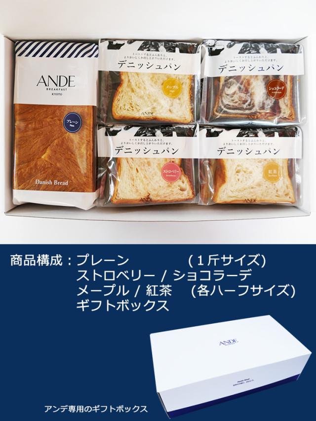 デニッシュ 食パン ギフト (ボックス付き) プレーン1斤とメープル・ショコラーデ・ストロベリー・紅茶各ハーフサイズ 5点セット アンデ