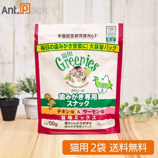 グリニーズ 歯みがき専用スナック チキン味&サーモン味 旨味ミックス味 猫用 130g×2袋 (61249)
