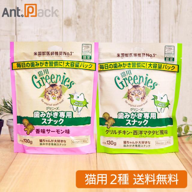 グリニーズ 歯みがき専用スナック 香味サーモン味・グリルチキン西洋マタタビ風味 猫用 130g×各1袋