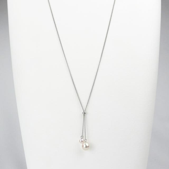 「アコヤ真珠 2粒 5.0-9.0mm ロング チェーン ネックレス」はシンプルなコーデにぴったりなロングチェーンネックレスです。テリのいい良質な大珠あこや真珠と小さめの可愛いあこや真珠2ピースを使用しています。パールサイズのコントラストが目を惹く、大人の本真珠アクセサリーです。シリコンスライダー付きで、留める位置を変えることによってお好みのデザインをお楽しみいただけます。プライベートでもオフィスでも、毎日使える万能アイテムです。
