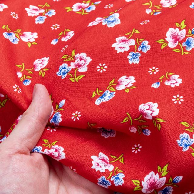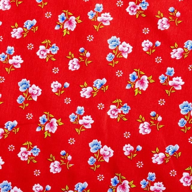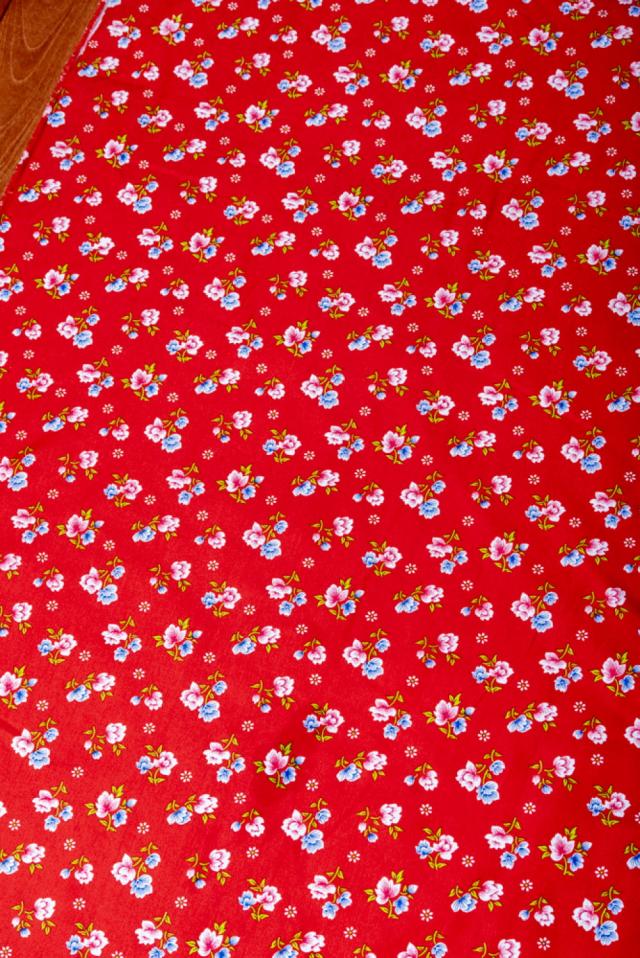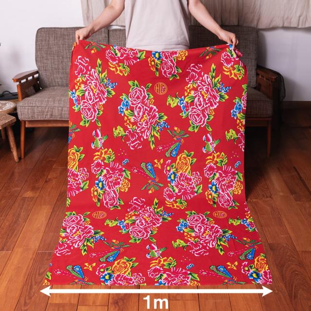 【3個セット】〔1m単位切り売り〕アジアのレトロ小花柄ファブリック ヴィンテージ風 昭和レトロ〔約162.5cm〕 レッド / 東北大花布 客家花布 牡丹四季花 ノスタルジック ヴィンテージファブリック風 インド エスニック