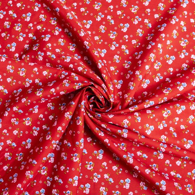 【3個セット】〔1m単位切り売り〕アジアのレトロ小花柄ファブリック ヴィンテージ風 昭和レトロ〔約162.5cm〕 - レッドです。セットでお得になっています♪