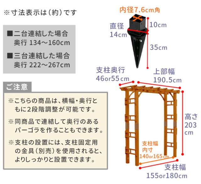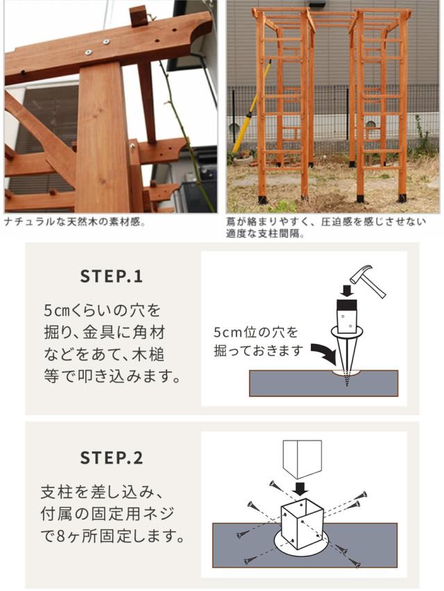 天然木製パーゴラアーチ 埋め込み金具セット【2台組】