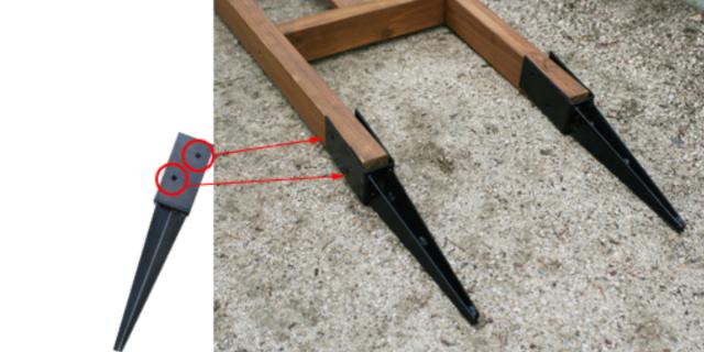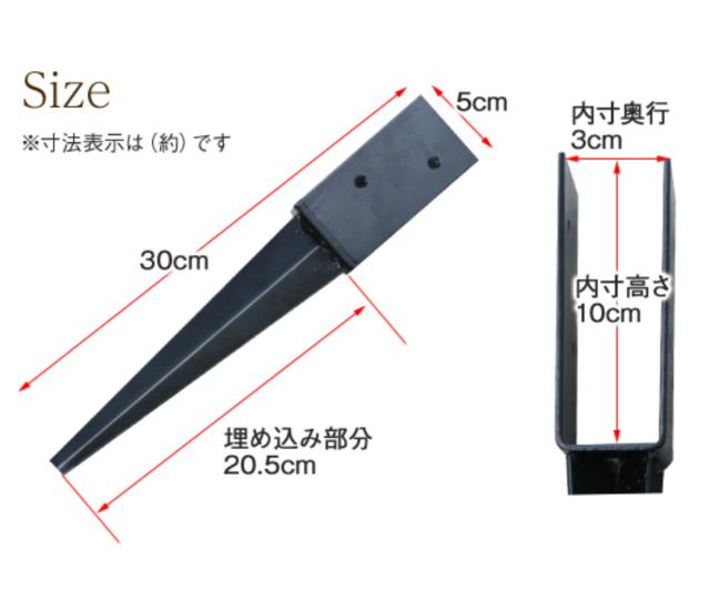 パーゴラアーチや木製アーチ専用の土中用埋め込み設置金具です。アーチの脚に1ヵ所〜4ヵ所取り付けることで、しっかりと地面に固定できます。