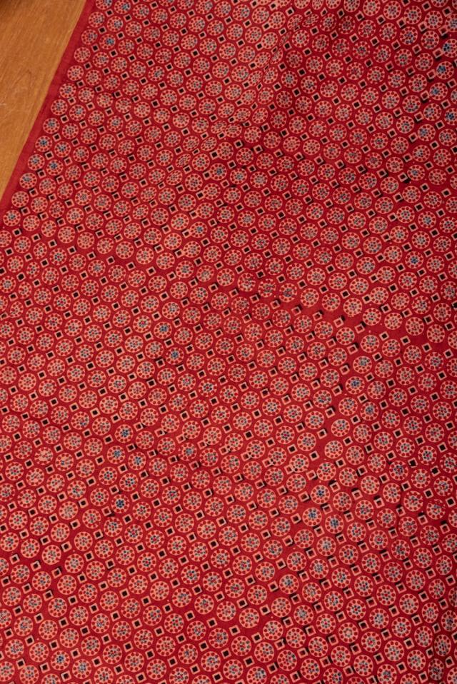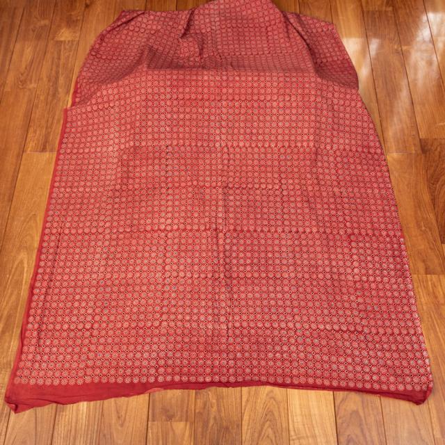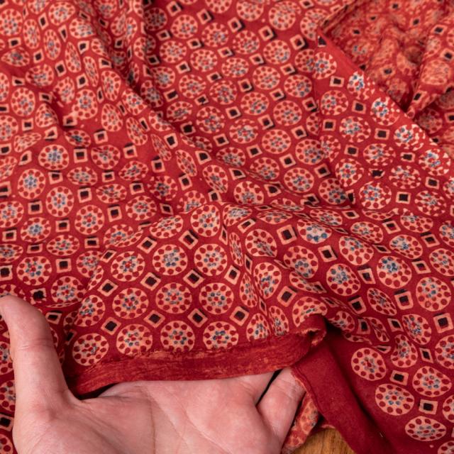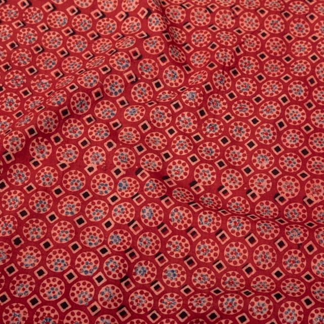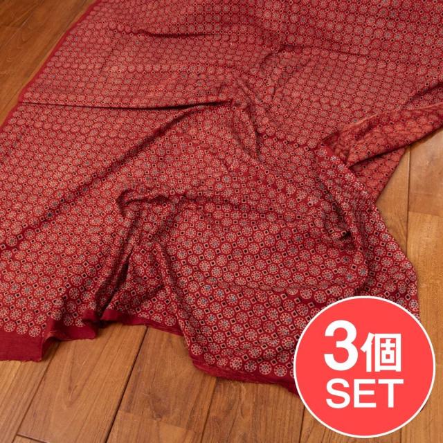【3個セット】〔1m単位切り売り〕アジュラックプール村からやってきた 昔ながらの木版染めアジュラックデザイン布〔約113cm〕 レッド系 / テーブルクロス おしゃれ 量り売り布 アジア布 手芸 インド アジアン コットン布 ファブリック エスニック