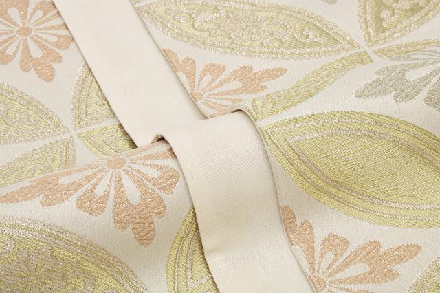 袋帯 訪問着 留袖 振袖 礼装 正装 金 オレンジ ベージュ クリーム 緑 花七宝 花 女性用 レディース 仕立て上がり日本製 送料無料